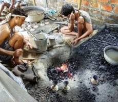 The objects made of bell-metal are heavier and bulkier in weight because of the extensive use of metal. This craftsmen inherit the knowledge from their elders and thus the industry runs on hereditary system. Modem tools and technology has not yet touched the lives of the artisans and they still adhere to primitive tools and equipments in bell-metal production. One major problem faced by the industry is the supply of raw materials which is usually purchased from the middleman.