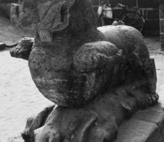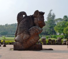 Around the grounds are a small shrine called Mayadevi Mandir; a deep, covered well; and the ruins of a brick temple. To the north are a couple of elephant statues; to the south are a couple of horse statues, both trampling soldiers.