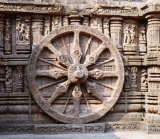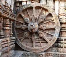 The entire temple was conceived as the cosmic chariot of the sun god, Surya. Seven mighty prancing horses – representing the days of the week, rear at the strain of moving this leviathan of stone on 24 stone cartwheels – representing the hours of the day, positioned around the temple base. The temple was positioned so that dawn light would illuminate the deul interior and the presiding deity, which may have been moved to Jagannath Mandir in Puri in 17th century.