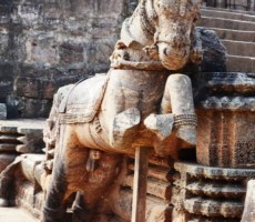 The temple is the most noted marvel of Orissan art. The vivacious kanyas and danseuse are remarkable for their sensuous modelling, pulsating with human emotions which are absorbed in a variety of gestures and rhythmic actions. Such sculptures render the Orissan temple a class unto themselves. Mighty simha-gajas welcome the visitors at the porches.