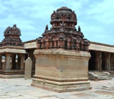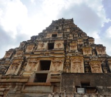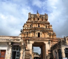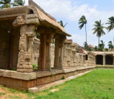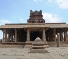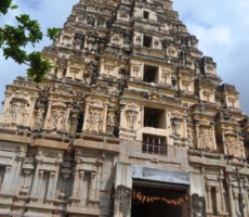 This large and ornate east-facing temple complex is built in the typical Vijayanagara style. One of the pillars in the ardhamandapa is noteworthy as all the ten avatars of Vishnu, including the rare one of Kalki, are carved on it. Kalki is depicted as a seated figure with a horse’s head.