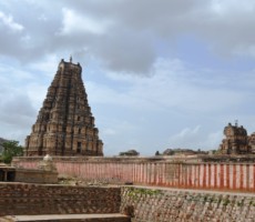 As mentioned by Longhurst, an archaeologist, Hari Kara built additional temples around this temple. In 1509-10, during the time of his coronation, Sri Krishnadevaraya built the Ranga Mandapa. There are steps to enter the Virupaksha temple from the east, south and north. But there is no entrance from the east.