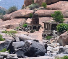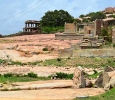 This area of Hampi is quite different from the area around Hampi Bazaar, since most of the rounded boulders that once littered the site have been used to create beautiful stone walls. Within various enclosures here are the rest of Hampi’s major attractions including the walled compound known as the zenana enclosure and the Elephant Stables