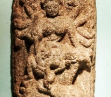 A unique huge phallus shaped object, identified as mukhalinga , made of kaolin with a small hole at the tapering top, is found at Ambari having hair or rays on it in relief.