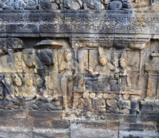 The walls and balustrades are decorated with fine low reliefs, covering a total surface area of 2,500 m2. Around the circular platforms are 72 openwork stupas, each containing a statue of the Buddha. The monument was restored with UNESCO’s help in the 1970s.