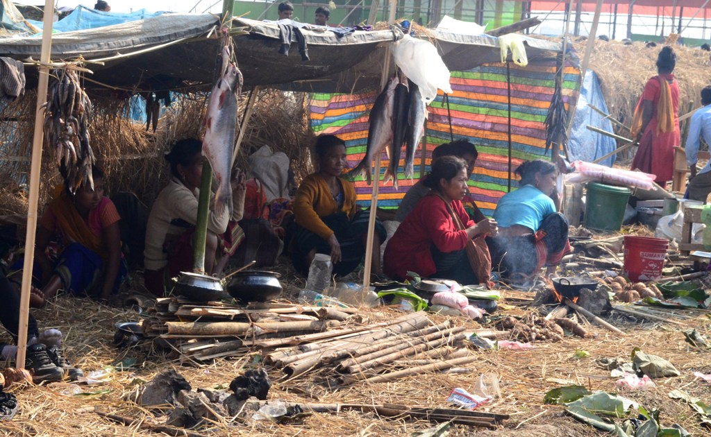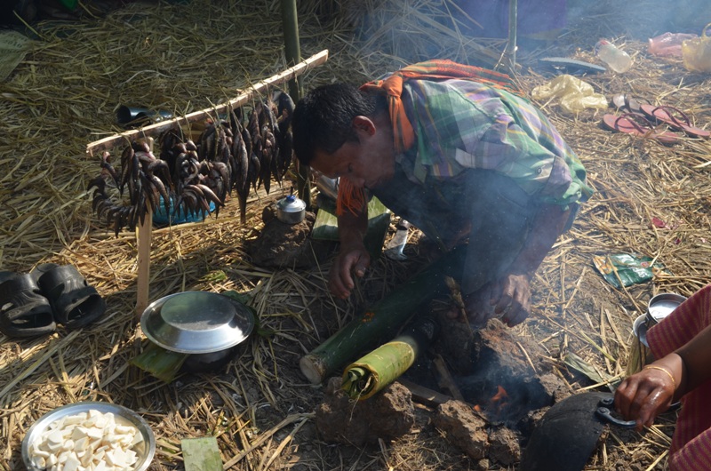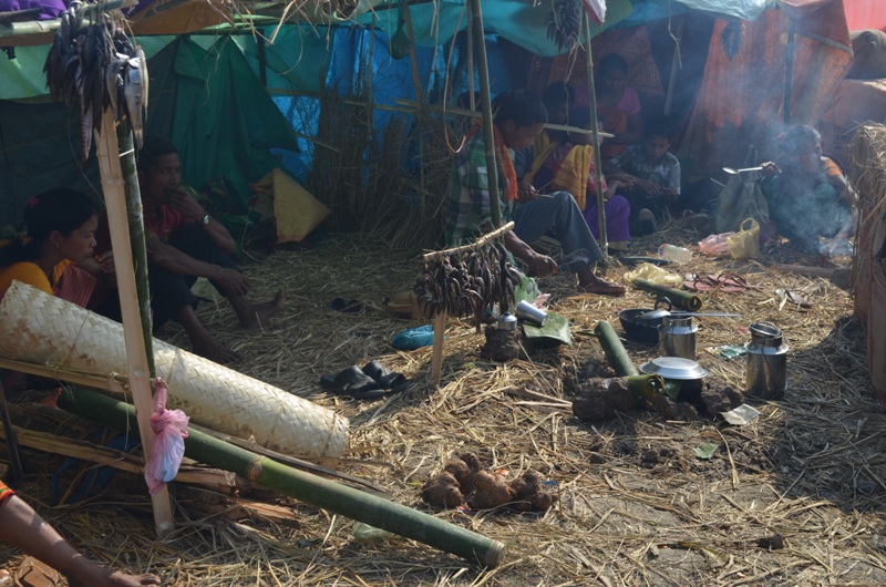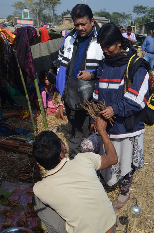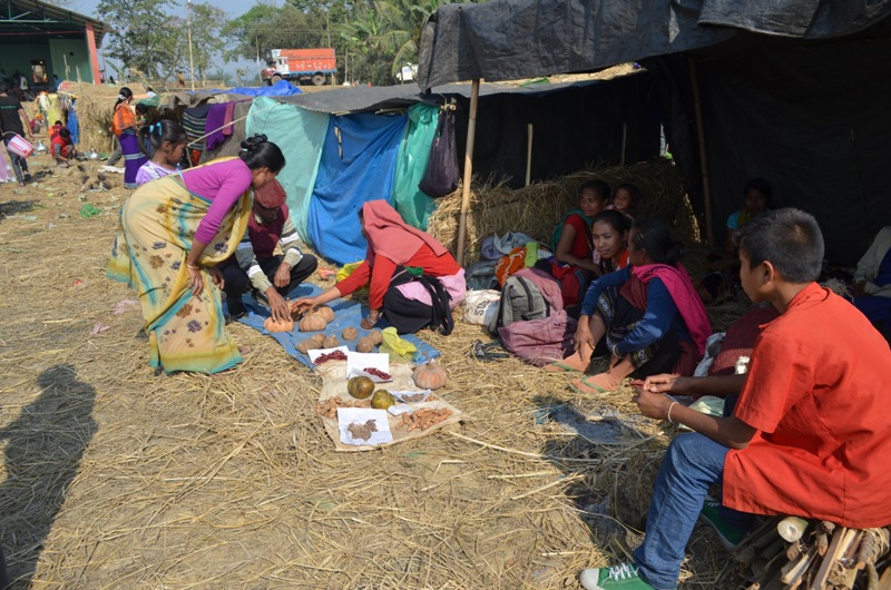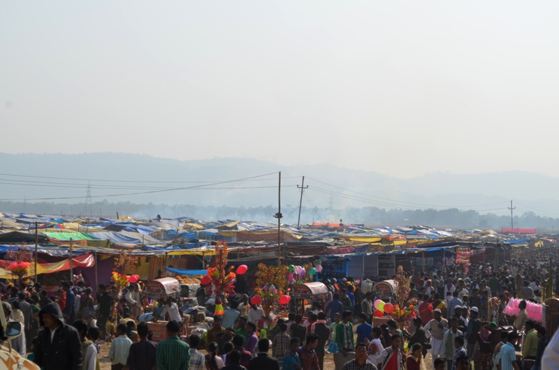 The historic Joonbeel Mela is held every year in the month of January for 3 days in the Morigaon district of Assam. All trades are carried out through the primitive barter system here in the mela. The tribal people from the nearby hills come down to the plains and set up their camp where they exchange the commodities brought them with the locals. People also participate in the community fishing in the nearby lake popularly known as beel. The fair is popularly called the ‘Junbeel’ Mela meaning moon (Jun) and wetland (beel) as it is held beside a large natural water body shaped like a crescent moon. The products usually traded during the fair include ginger, bamboo shoots, turmeric, pumpkin, medicinal herbs, dried fish and ‘pithas’ (rice cakes). The Gova king presides over the Mela gathering followed by public meeting where he greets the kings of the nearby kingdom. It is a three day affair and the bartering of the commodities starts at 3 am early in the morning.