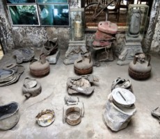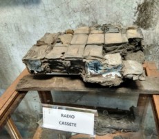 A mini museum, converted out of a house completely damaged by the hot cloud ashes from the volcano of Mount Merapi, houses the remains of objects after eruption, ranging from household appliances, electronics, and burned clothes.