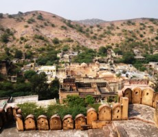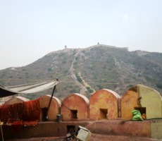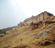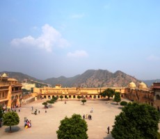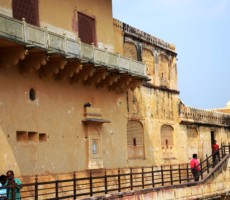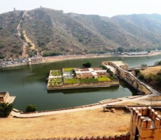 The Amber or Amer Fort was built by Raja Man Singh in the 16th century and completed by Sawai Jai Singh in the 18th Century AD. The Fort which is situated in Jaipur, Rajasthan was completed within two centuries by consistence efforts of three consequent kings following Raja Man Singh. Set on a rocky hill above the Maohta lake, the Fort is built on both Hindu and Mughal architectural background, with temples, gates, palaces and other structures. The materials used in the construction of the fort are marble and yellow sandstone.