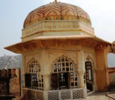 The Jai Mandir built by Raja Man Singh in 1727 is highly decorated with colourful mirrors covering its walls and convex-shaped ceilings. For its intricate mirror decoration the Jai mandir is also known as Sheesh Mahal.